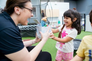 Playing with an animal puzzle – point to lion and say “ Roar”, point to cat and say “Meow”, point to crocodile and say “snap, snap”
